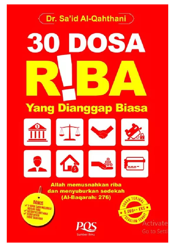 Halal dan haram bukanlah sesuatu yang samar melainkan sudah sangat jelas Khususnya dalam masalah harta tidak hanya bagaimana cara kita mendapatkannya tetapi juga masalah pertanggung jawaban di akhirat nanti Maka seseorang harus lebih berhati hati dan waspada dalam mencari harta Jangan sampai harta yang telah dicari dengan segenap tenaga dan waktu justru tidak berkah serta menjadi penyebab dosa besar yang tidak disadari Buku 30 Dosa Riba yang Dianggap Biasa menjadi solusi terbaik sebagai angkah preventif untuk menjauhkan harta kita dari riba Penulis memaparkan secara tuntas tentang bahaya dampak dan akibat transaksi ribawi yang sangat mengerikan Dengan membaca buku ini Anda akan mengetahui tentang 1 Penjelasan tentang riba sebelum Islam 2 Macam macam riba 3 Sikap Islam terhadap riba 4 Riba kontemporer dan permasalahannya 5 30 dosa riba yang dianggap biasa 6 Motivasi agar meninggalkan riba dan hidup tanpa hutang