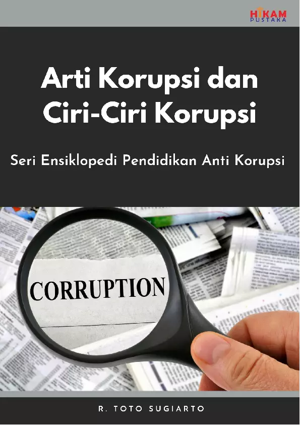 Sinopsis Buku: "Arti Korupsi dan Ciri-Ciri Korupsi: Seri Ensiklopedi Pendidikan Anti Korupsi" Buku ini merupakan karya dari R. Toto Sugiarto, yang dirancang untuk memberikan pemahaman mendalam tentang konsep korupsi, bentuk-bentuknya, dampaknya, serta upaya pencegahan dan pemberantasan korupsi. Buku ini merupakan bagian dari Seri Ensiklopedi Pendidikan Anti Korupsi yang bertujuan untuk meningkatkan kesadaran masyarakat terutama generasi muda, tentang pentingnya integritas, transparansi, dan akuntabilitas dalam berbagai bidang kehidupan, khususnya dalam sistem pemerintahan dan ekonomi. Buku ini menyajikan definisi korupsi dari berbagai perspektif, termasuk pandangan hukum, ilmu politik, ekonomi, dan para ahli ternama seperti Guy Benveniste, Mubyarto, Gunnar Myrdal, serta Lexicon Webster Dictionary. Selain itu, buku ini juga menjelaskan berbagai bentuk dan bidang yang memungkinkan terjadinya korupsi, seperti dalam pemerintahan, bisnis, pendidikan, dan kehidupan sehari-hari. Dalam bagian khusus, buku ini juga membahas ciri-ciri korupsi yang memudahkan pengenalan dan pencegahan tindakan koruptif. Selain itu, buku ini menyertakan informasi tentang hukuman yang dikenakan terhadap pelaku korupsi, sesuai dengan Undang-Undang Republik Indonesia No. 19 Tahun 2002 tentang Hak Cipta, serta peran penting pemerintah dalam pemberantasan korupsi. Buku ini juga menyoroti pentingnya budaya anti korupsi dalam masyarakat dan bagaimana korupsi dapat merugikan keuangan negara, perekonomian, dan kepercayaan publik terhadap institusi pemerintah. Dengan pendekatan yang terstruktur dan informatif, buku ini menjadi sumber referensi yang bermanfaat bagi pelajar, mahasiswa, pegawai negeri, dan masyarakat umum yang ingin memahami lebih dalam tentang korupsi dan bagaimana menghindarinya.