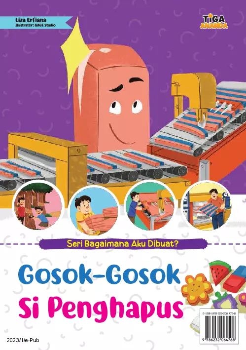 Halo aku Si Penghapus Karet Kalian pasti sudah mengenalku atau bahkan memiliki aku Namun sudahkah kalian tahu bagaimana aku dibuat Yuk cari tahu dalam buku ini Kalian bisa belajar proses pembuatan penghapus juga cara merawatnya Seru kan