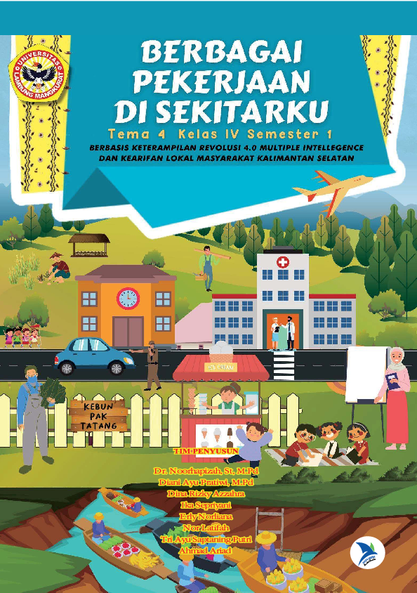 Sinopsis Buku: Buku ini merupakan buku ajar yang berjudul *“Berbagai Pekerjaan di Sekitarku”* dan dirancang untuk mendukung pembelajaran Kurikulum 2013, Tema 4, yang berfokus pada *“Berbagai Pekerjaan”*. Buku ini mengintegrasikan muatan pelajaran dari berbagai bidang, yaitu IPA, IPS, Bahasa Indonesia, SBDP, dan PPKn, yang disesuaikan dengan Buku Tematik Terpadu Kurikulum 2013. Buku ini dirancang untuk melatih kecerdasan multiple intelligences dan mendorong siswa untuk belajar secara aktif, kreatif, menantang, dan bermakna. Dalam buku ini, siswa akan mempelajari berbagai jenis pekerjaan yang ada di Kalimantan Selatan, termasuk pengaruh lahan basah dan kearifan lokal setempat terhadap jenis-jenis pekerjaan tersebut. Buku ini juga dilengkapi dengan berbagai kegiatan pembelajaran yang dapat meningkatkan kemampuan Critical Thinking, Creativity, Problem Solving, Collaboration, Negotiation, dan Communication (CCTC). Selain itu, buku ini menekankan pentingnya proses pembelajaran yang berlandaskan nilai-nilai luhur dan mendorong kemampuan berpikir kritis. Buku ini dirancang secara terbuka dan terus diperbaiki untuk memberikan pengalaman belajar yang lebih baik. Buku ini merupakan hasil kerja sama tim penulis yang terdiri dari Dr. Noorhapizah, St, M.Pd; Diani Ayu Pratiwi, M.Pd; Dina Rizky Azzahra; Ika Sepriyani; Erly Norliana; Nor Latifah; Tri Ayu Saptaning Putri; dan Ahmad Ariadi. Buku ini juga telah direvisi oleh editor Akhmad Riandy Agusta, M.Pd, dan disusun dengan layout oleh @nutamed. Buku ini diterbitkan oleh Nuta Media Jogja dengan ISBN 978-623-5967-12-7.