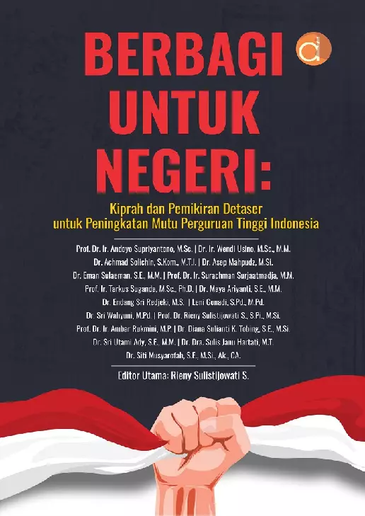 Sinopsis Buku: Buku ini merupakan kumpulan pemikiran, pengalaman, dan refleksi dari para Detaser yang terlibat dalam Program Detasering Direktorat Jenderal Pendidikan Tinggi (Ditjen Dikti) Tahun 2021. Buku *“BERBAGI UNTUK NEGERI: Kiprah dan Pemikiran Detaser untuk Peningkatan Mutu Perguruan Tinggi Indonesia”* disusun dengan tujuan memberikan wawasan dan pengalaman pelaksanaan program Detasering kepada khalayak yang lebih luas. Program Detasering, yang bertujuan meningkatkan kualitas pendidikan tinggi di Indonesia, selama ini hanya dikenal oleh sivitas akademik di Perguruan Tinggi Sasaran (Pertisas). Buku ini menggambarkan kontribusi nyata para Detaser dalam membina Pertisas, serta menyajikan berbagai literatur dan referensi yang relevan dengan topik yang dibahas. Dengan beragam latar belakang keilmuan dan pengalaman, para penulis dalam buku ini memberikan perspektif yang kaya dan mendalam tentang peran serta dampak program Detasering dalam pengembangan pendidikan tinggi Indonesia. Buku ini menjadi sumber informasi yang bermanfaat bagi akademisi, peneliti, dan semua pihak yang peduli dengan peningkatan mutu pendidikan tinggi di Indonesia.