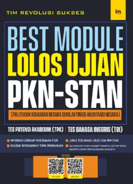 Sinopsis Buku: Buku ini merupakan panduan lengkap dan terpercaya untuk membantu calon peserta Ujian Saringan Masuk (USM) Politeknik Keuangan Negara Sekolah Tinggi Akuntansi Negara (PKN STAN) dalam mempersiapkan diri secara efektif dan efisien. Buku ini dirancang untuk memberikan pemahaman mendalam tentang konsep dasar Tes Potensi Akademik (TPA) dan Tes Bahasa Inggris (TBI), dua bagian utama dalam tes tertulis USM PKN STAN yang merupakan penentu utama dalam seleksi masuk. Dalam buku ini, Tim REVOLUSI SUKSES telah mengumpulkan dan menganalisis soal-soal USM PKN STAN dari tahun-tahun sebelumnya, disusun berdasarkan topik-topik pembahasan untuk memudahkan pemahaman dan penguasaan materi. Buku ini juga memberikan strategi belajar yang terstruktur dan praktis, sehingga membantu pembaca untuk meningkatkan kemampuan dalam menjawab soal-soal dengan cepat dan akurat. Selain itu, buku ini juga menyajikan informasi terkini mengenai profil PKN STAN, termasuk penempatan lulusan, struktur organisasi instansi-instansi pemerintah tempat lulusan PKN STAN bekerja, serta program studi yang disediakan oleh PKN STAN, seperti Jurusan Akuntansi, Jurusan Pajak, dan Jurusan Kepabeanan dan Cukai. Dengan memanfaatkan materi yang terkumpul dalam buku ini, pembaca dapat meningkatkan peluang untuk lolos dalam seleksi USM PKN STAN dan menjadi bagian dari institusi pendidikan tinggi yang berprestasi dan berpengaruh dalam bidang keuangan negara. Buku ini adalah panduan yang sangat penting bagi para calon mahasiswa PKN STAN yang ingin meraih kesuksesan dalam proses seleksi.