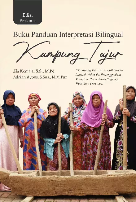 Sinopsis Buku Panduan Interpretasi Bilingual Kampung Tajur Edisi Pertama Buku Panduan Interpretasi Bilingual Kampung Tajur Edisi Pertama adalah sebuah panduan terstandar yang dirancang untuk mendukung para penggiat pariwisata, terutama para petani dan pemuda Karang Taruna di Kampung Tajur serta Desa Pasanggrahan, dalam menjalankan tugas sebagai pemandu wisata lokal. Buku ini disusun dalam dua bahasa, yaitu Bahasa Indonesia dan Bahasa Inggris, dengan tujuan memudahkan komunikasi dan penyampaian informasi kepada wisatawan dalam berbagai latar belakang. Buku ini berisi lima materi interpretasi yang telah disusun secara terstruktur, meliputi: Sekilas Kampung Tajur, Rumah Tradisional Sundan, Panggulaan, Tutunggulan, dan Wajit Kararas. Materi-materi ini dirancang untuk memberikan gambaran yang jelas dan menarik tentang daya tarik wisata yang ada di Kampung Tajur, serta mengenalkan budaya dan sejarah lokal yang menjadi bagian dari identitas kampung ini. Dengan adanya buku ini, diharapkan kualitas kepemanduan wisata di Kampung Tajur dapat meningkat, sehingga wisatawan dapat memperoleh pengalaman yang lebih mendalam dan bermakna. Buku ini juga berharap dapat menjadi dasar untuk pengembangan lebih lanjut dalam bentuk penerapan teknik interpretasi lainnya seperti *games* dan *participating* dalam pelayanan wisata di masa depan.