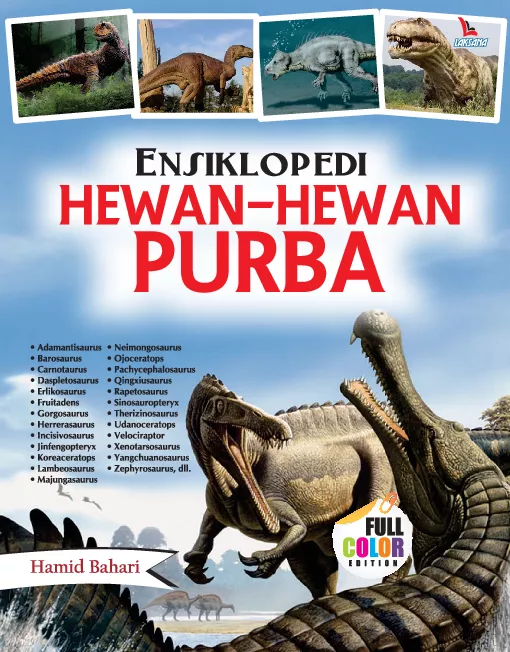 Tahukah Anda bahwa selain Tyrannosaurus yang terkenal dan sangat fenomenal itu masih ada ratusan hewan purba lainnya yang tidak kalah menakjubkan dan akan membuat kita terus berdecak kagum Selain karena bentuk tubuh dan rupa yang kerap dianggap menyeramkan hewan hewan purba tersebut memang sangat menarik karena hidup di zaman yang tidak pernah kita saksikan jutaan tahun yang lalu namun jejaknya masih bisa kita telusuri hingga saat ini Nah seperti apa kehidupan hewan hewan purba itu sesungguhnya Apa saja jenis dinosaurus yang pernah hidup di muka bumi ini baik di darat udara maupun lautan Simak saja semuanya secara lebih lengkap di dalam ensiklopedi luar biasa ini Disertai dengan gambar full color serta keterangan lengkap seputar nama zaman makanan tempat fosil ditemukan ciri ciri serta panjang tinggi dan berat badan hewan hewan purba tersebut yang rata rata sangat fantastis ensiklopedi ini tidak sekadar menyajikan pengetahuan baru bagi Anda tetapi juga akan membuat Anda semakin bertambah kagum dengan kehidupan masa lalu bumi ini Selamat membaca