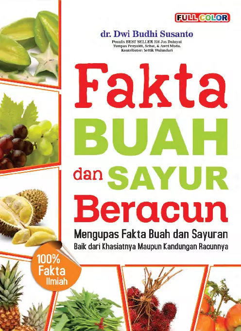 Sinopsis Buku: Buku ini menyajikan informasi menyeluruh tentang manfaat dan bahaya yang terkandung dalam berbagai jenis buah dan sayuran. Mulai dari buah-buah yang memiliki kandungan gizi tinggi hingga sayuran yang memiliki khasiat kesehatan, buku ini menjelaskan secara mendetail manfaat serta potensi risiko yang mungkin terjadi akibat konsumsi berlebihan atau tidak tepat. Selain itu, buku ini juga menjelaskan tentang buah-buah dan sayuran yang beracun, seperti almond, alpukat, anggur, apel, belimbing, serta berbagai jenis sayuran seperti bawang merah dan bayam. Penjelasan ini dilengkapi dengan informasi ilmiah dan kesehatan yang relevan, serta memberikan rekomendasi untuk penggunaan yang aman dan tepat. Buku ini sangat cocok sebagai referensi bagi mereka yang ingin memahami lebih dalam tentang nutrisi, kesehatan, dan dampak dari konsumsi buah serta sayuran dalam kehidupan sehari-hari.
