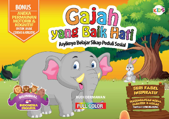 Sinopsis: Dalam buku ini, kisah tentang seekor gajah yang sangat baik hati dan rendah hati menjadi pusat cerita. Gajah tersebut memiliki kekuatan yang luar biasa, tetapi tidak pernah menyombongkan diri. Ia selalu membantu binatang-binatang lain yang membutuhkan pertolongan, baik yang besar maupun kecil, seperti harimau yang terluka akibat pohon jatuh atau kancil yang tersedak karena terburu-buru minum setelah makan. Melalui peristiwa-peristiwa yang dialami gajah, pesan moral tentang pentingnya tolong-menolong, kerendahan hati, dan kebaikan terus disampaikan. Buku ini tidak hanya menghibur, tetapi juga memberikan pelajaran tentang pengembangan moral dan karakter yang baik bagi anak-anak.
