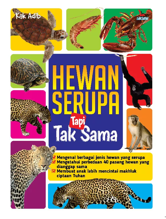 Ayo siapa yang tahu perbedaan penyu dan kura kura monyet dank era kodok dan katak juga lebah dan tawon Ternyata kita sering kesulitan membedakannya ya Nah buku ini mengulas puluhan pasang hewan yang dianggap sama padahal sejatinya berbeda Apa sajakah hewan hewan itu Di antaranya adalah 1 Lebah dan Tawon 2 Elang dan rajawali 3 Kalong dan Kelelawar 4 Kuda dan Keledai 5 Sapi dan Kerbau 6 Bison dan Banteng 7 Rusa dan Kijang 8 Babi dan Celeng 9 Jaguar dan Macan 10 Kera dan Monyet 11 Musang dan Luwak 12 Tikus dan Curut 13 Marmut dan Hamster 14 Cecak dan Tokek 15 Laba laba dan Tarantula 16 Bebek dan Itik 17 Katak dan Kodok 18 Buaya dan Aligator 19 Siput dan Keong 20 Tuna dan Tongkol 21 Kura kura dan Penyu 22 Kepiting dan Rajungan 23 Udang dan Lobster 24 Dan lain lain Selain ulasan singkat tentang perbedaan puluhan hewan buku ini juga dilengkapi dengan ilustrasi yang menarik dan permainan permainan yang meningkatkan kemampuan intelektual imajinasi dan motorik