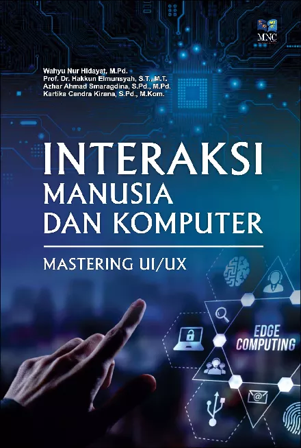 Interaksi Manusia dan Komputer Human Computer Interaction atau HCI kini telah menjadi salah satu aspek penting dalam pengembangan produk digital di era teknologi modern Dari aplikasi mobile situs web hingga berbagai perangkat interaktif setiap interaksi antara pengguna dengan sistem digital berperan signifikan dalam menentukan kepuasan dan efektivitas produk tersebut di pasar Oleh karena itu pemahaman mendalam mengenai bagaimana pengguna berinteraksi dengan teknologi sangat dibutuhkan oleh desainer pengembang dan pemangku kepentingan untuk menciptakan produk yang intuitif dan mudah digunakan Buku ini berjudul Interaksi Manusia dan Komputer Mastering UI UX hadir sebagai panduan komprehensif bagi mereka yang ingin memahami dan menerapkan konsep konsep fundamental dalam bidang HCI Buku ini memadukan teori dan praktik yang seimbang antara dasar dasar konseptual dan aplikasi nyata di lapangan dengan menggunakan metode Design Thinking sebagai landasan utama