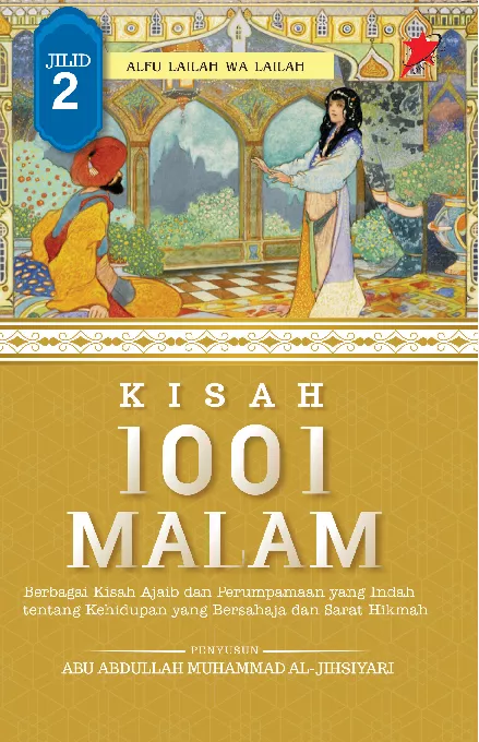 KISAH 1001 MALAM JILID 2 Kisah 1001 Malam Jilid 2 dimulai dari malam ke 46 hingga malam ke 128 Kali ini Syahrazad memulai kisahnya tentang hikayat dua wazir di Kerajaan Basrah kemudian dilanjutkan dengan hikayat Ganim bin Ayyub kisah Shawab kisah Kafur kisah Qut al Qulub hikayat Raja Umar an Nu man dan dua orang putranya serta kisah tentang Putri Ibrizah Khalifah Harun ar Rasyid dan Wazir Ja far al Barmaki tampil kembali ditambah dengan permaisuri sang khalifah Ratu Zubaidah binti Ja far Volume ini juga mengambil latar cerita tentang Kekaisaran Romawi kala beribu kota di Konstantinopel dan Kekaisaran Persia Berbeda dengan jilid pertama yang lebih banyak menawarkan kisah fantasi jilid ini diliputi oleh kisah perang antar agama drama dan tragedi Lebih unik lagi di jilid kedua ini ditampilkan ajaran kebijaksanaan dari Khulafa ar Rasyidin Mu awiyah bin Abu Sufyan Umar bin Abdul Aziz Kusraw Nusyirwan Yazdazir dan lain lain Ditampilkan juga ajaran ajaran dari para sufi besar seperti Hasan al Bashri Ibrahim bin Adham Bisyr al Khafi Hathim al Asham dan lain semacamnya Dalam satu dan lain hal separuh jilid terakhir berisi banyak tentang ilmu pengetahuan Islam