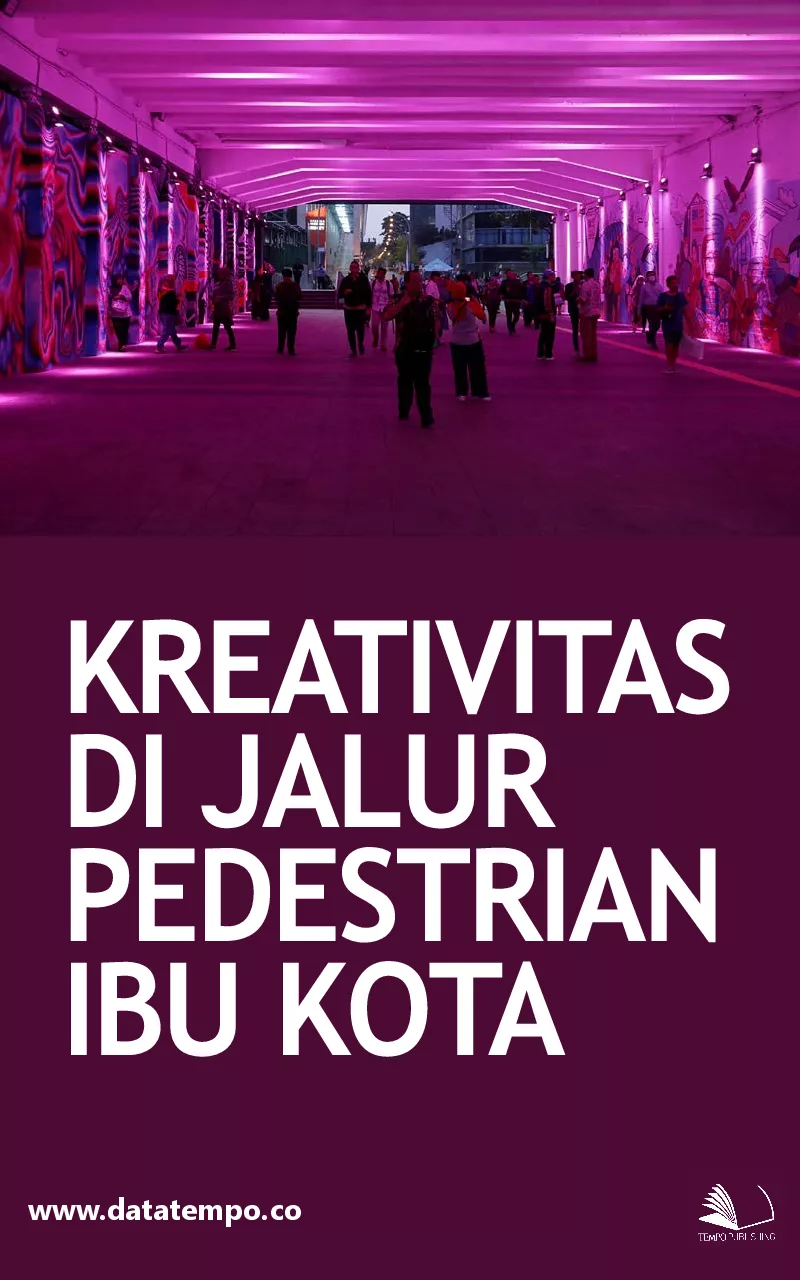 Bukan hanya moda transportasi umum yang semakin bagus jalur pedestrian di Jakarta juga semakin nyaman Trotoar taman kota dan te rowongan stasiun akhirnya menjadi ruang bagi warga kota untuk berekspresi dan berkreasi Dari pemusik seniman mural tukang sketsa hingga seniman kaca patri