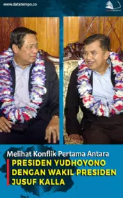 Untuk pertama kalinya Presiden Susilo Bambang Yudhoyono dan Wakil Presiden Jusuf Kalla bersitegang secara terbuka setelah dua tahun berduet Pemicunya Unit Kerja Presiden untuk Pengelolaan Program dan Reformasi yang dibentuk SBY Keduanya sudah dua kali bertemu untuk membahas soal ini secara empat mata Pertikaian boleh jadi mereda tapi belum tuntas Ibarat api di dalam sekam