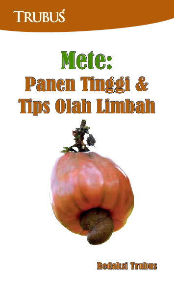 Teknik budidaya jambu mete perlu diperbaiki Caranya dengan menggunakan teknologi tepat guna seperti pemangkasan pembuatan rorak dan aplikasi pupuk organik Buah jambu mete misalnya terdapat pada ujung ranting atau cabang yang mendapat sinar matahari langsung Oleh karena itu pekebun mesti memangkas agar semakin banyak ranting dan cabang produktif Dengen begitu hasil panen melimpah Pembaca bisa mendapatkan informasi singkat tentang upaya memacu produksi jambu mete dalam buku ini Lewat buku ini pembaca juga mendapatkan info tentang cara mengolah limbah jambu mete