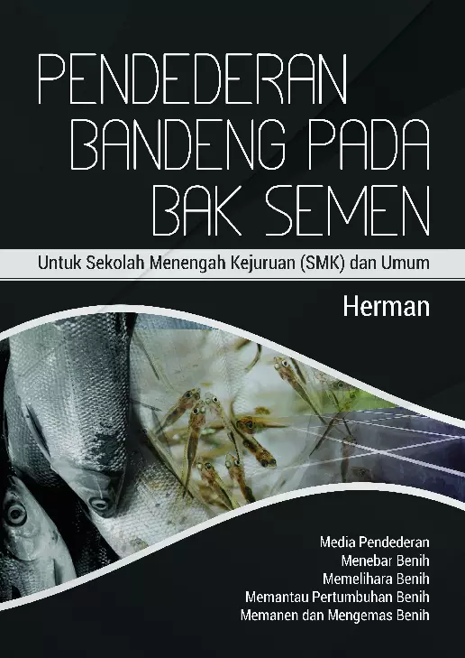 Buku ini membahas tentang kegiatan pendederan bandeng pada bak semen yang isi materinya terdiri dari menyiapkan wadah dan media menebar benih memelihara benih memantau pertumbuhan benih serta memanen dan mengemas benih Kegiatan ini bisa dilaksanakan baik secara skala besar industri maupun skala kecil rumah tangga
