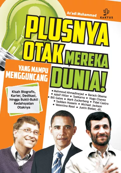 Nama Barack Obama Adolf Hitler Bill Gates Saddam Hussein Ir Soekarno Michael Jackson dll tentu sudah tidak asing lagi di telinga Anda Mereka adalah orang orang yang mampu membuat gebrakan supercanggih di bidangnya masing masing Begitu fenomenal menakjubkan super berani revolusioner inspiratif dan bahkan mengubah wajah dunia Sebenarnya apa ya rahasia di balik kesuksesan dan kegeniusan mereka itu Otak macam apakah sesungguhnya yang mereka miliki Bagaimanakah cara mengasah dan meledakkanya hingga sede mikian dahsyatnya Bagaimana mereka mampu sampai pada kegeniusan itu dan melakukan semua manuver hebat tersebut Dan bagaimana mereka mampu merealisasikannya menjadi sebuah gebrakan yang mengguncang wajah dunia Baca buku ini Anda akan menemukan semua jawaban tersebut Anda juga akan dapat mengambil benang merah dari perjalanan hidup mereka sehingga terinspirasi untuk berbuat besar layaknya mereka menjadi orang orang yang mampu memberikan warna menawan bagi orang lain bahkan dunia