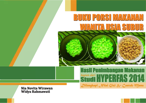 Buku ini berisi foto foto ukuran porsi kecil sedang dan besar untuk lebih dari 150 jenis makanan Wanita Usia Subur hasil penelitian yang dilakukan di Kota Malang Jawa Timur Penelitian dilakukan dengan metode penimbangan makanan selama 3 hari dimana data konsumsi telah teruji tidak mengalami underreporting atau overreporting berdasarkan perhitungan rasio Energy Intake dan predicted Total Energy Expenditure berdasarkan rumus McCrory 2002 Jenis makanan yang ditampilkan dalam buku ini adalah makanan yang dikonsumsi oleh 1 8 subyek dan didasarkan pada persentil 25 untuk porsi kecil median untuk porsi sedang dan persentil 75 untuk porsi besar Untuk mempermudah penggunaan buku buku ini juga dilengkapi dengan kandungan gizi untuk tiap ukuran porsi Tiap jenis makanan juga dilengkapi dengan skala dimensi dalam centimeter dan berat makanan Buku porsi ini sangat penting digunakan sebagai alat bantu dalam penilaian konsumsi makan khususnya dengan metode semi kuantitatif atau Semi Quantitative Food Frequency Questionnaire SQ FFQ yang sering dilakukan oleh akademisi ahli gizi mahasiswa kesehatan serta praktisi gizi Selain itu buku ini juga bermanfaat sebagai alat bantu dalam edukasi gizi sehingga klien akan lebih mudah menerapkan porsi pengaturan makan yang dianjurkan oleh ahli gizi
