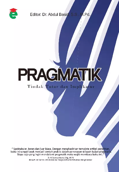Sinopsis Buku: Pragmatik: Tindak Tutur dan Implikatur Buku ini merupakan jilid kedua dari dua buku yang berisi kajian tentang bidang pragmatik dalam studi bahasa. Buku ini berbentuk bunga rampai yang terdiri dari berbagai artikel penelitian yang ditulis oleh mahasiswa dalam mata kuliah Pragmatik yang dibimbing oleh Dr. Abdul Basid, S.S., M.Pd. Setiap artikel dalam buku ini merupakan penerapan teori-teori pragmatik yang relevan, dengan pendekatan praktis dan aplikatif. Pembelajaran dalam buku ini didasarkan pada model *research based learning*, yang melibatkan langkah-langkah pembelajaran terstruktur, strategi menghadapi kesulitan, serta evaluasi pembelajaran. Mahasiswa diberikan kesempatan untuk memilih atau mengembangkan judul tulisan ilmiah berdasarkan tema-tema yang relevan dan kontemporer, serta diberi akses ke berbagai portal akademik seperti Google Scholar untuk mencari inspirasi dan referensi. Buku ini juga menggambarkan upaya untuk membangun niat dan semangat akademik mahasiswa dalam menguasai kepenulisan ilmiah dan penelitian. Penulis berharap buku ini dapat menjadi panduan dan motivasi bagi mahasiswa, peneliti, serta pemerhati kajian pragmatik dalam mengembangkan kemampuan akademik secara lebih mendalam dan profesional.