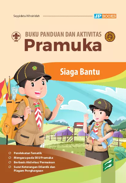 Sinopsis Buku Panduan dan Aktivitas Pramuka Siaga Bantu Buku ini merupakan panduan lengkap dan praktis yang dirancang untuk mendukung kegiatan pembelajaran dan pengembangan karakter peserta pramuka Siaga Bantu. Buku ini mengacu pada Syarat Kecakapan Umum (SKU) Pramuka, dengan pendekatan tematik yang menyelenggarakan berbagai aktivitas dan permainan sebagai media pembelajaran. Buku ini juga mencakup berbagai topik yang relevan dengan pembentukan karakter, seperti jenis-jenis salam pramuka, lambang gerakan pramuka, lagu Indonesia Raya, seni budaya daerah Indonesia, hemat dan cermat, lingkungan, acara adat dan budaya, hari-hari besar nasional, pahlawan Indonesia, alat komunikasi tradisional dan modern, mengenal arah mata angin, membedakan jam dan memperkirakan waktu, serta olahraga dan senam. Selain itu, buku ini juga menyediakan panduan tentang cara memelihara tanaman dan binatang ternak, makanan bergizi, fungsi anggota tubuh, pertolongan pertama pada kecelakaan (P3K), dan berbagai aktivitas yang melatih kemandirian, kerja sama, dan tanggung jawab. Buku ini dilengkapi dengan surat keterangan, piagam penghargaan, dan berbagai keterangan penting terkait hak cipta. Buku ini merupakan alat pendidikan yang komprehensif dan berbasis aktivitas, yang bertujuan untuk membentuk generasi muda yang berkualitas, berakhlak, dan berwawasan luas.