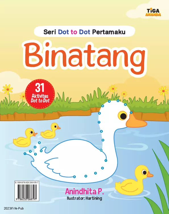 Buku aktivitas dot to dot menebalkan huruf dan menambah warna bertema binatang Pengguna dapat memainkannya langsung dengan fitur yang tersedia