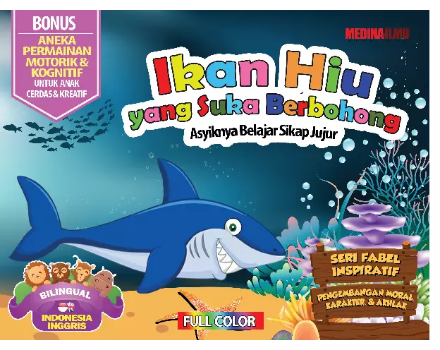 Buku Seri Fabel Inspiratif ikan hiu yang suka berbohong ini memiliki banyak manfaat bagi anak yaitu dapat meningkatkan kepandaiannya termasuk dalam membaca Selain itu daya kreativitas dan imajinasi anak juga akan semakin baik Buku ini di kemas dengan ilustrasi dan gambar yang menarik dan penuh warna ceritanya yang singkat dapat dengan mudah di pahami oleh anak Keunggulan lainnya ialah buku ini terdapat pesan moral yang dapat mengembangkan karakter dan budi pekerti yang baik pada anak