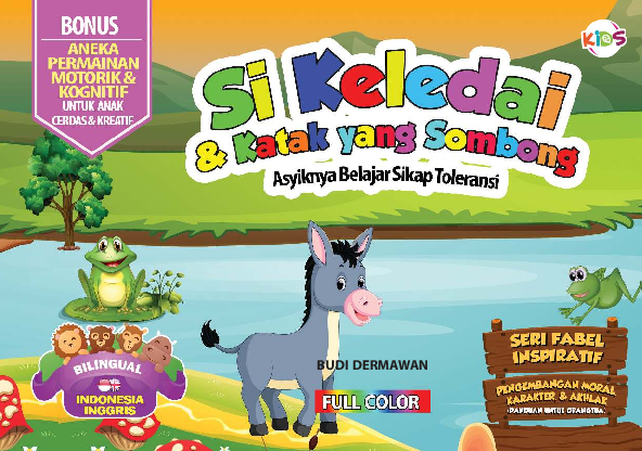 Sinopsis Buku: Dalam sebuah kisah fabel yang menginspirasi, terdapat seorang kakek yang memiliki seekor keledai. Pagi hari, kakek meminta keledai membawa kayu dari hutan ke pemukiman. Namun, saat keledai sedang menyeberang sungai, jembatan patah dan keledai terjatuh ke dalam air. Keledai meminta bantuan katak, tetapi katak justru mengejeknya. Keledai merasa kecewa dan memutuskan untuk menyeberang sendiri, tetapi terjebak di sungai. Di sisi lain, seekor kancil yang melihat kejadian tersebut mendengar percakapan keledai dan katak. Kancil merasa penasaran dan meminta penjelasan. Keledai menceritakan kesulitannya, sementara katak berusaha mencari alasan untuk mengejeknya. Kancil, yang cerdas dan penuh empati, memberikan penjelasan bahwa masing-masing makhluk hidup memiliki kelebihan dan kekurangan sesuai dengan tempat tinggalnya. Katak hidup di air karena makanan dan tempat berkembang biaknya, sedangkan keledai dan kancil hidup di daratan. Kancil menawarkan bantuan dan dengan kerja sama, mereka berhasil menyelamatkan keledai dari sungai. Keledai pun berterima kasih, sementara katak meminta maaf atas tindakannya yang tidak sopan. Akhirnya, mereka sepakat untuk tetap saling tolong-menolong, meskipun tinggal di tempat yang berbeda. Buku ini mengandung pesan moral bahwa makhluk hidup, baik manusia maupun hewan, harus saling membantu dan menghargai perbedaan. Dengan kerja sama dan empati, kita dapat mengatasi tantangan dan hidup harmonis bersama. Fabel ini dirancang untuk membangun nilai-nilai moral, karakter, dan akhlak pada anak-anak melalui cerita yang menarik dan mudah dipahami.