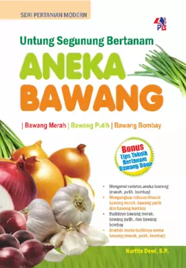 Permintaan produk 93 berupa bawang di Indonesia masih tinggi sehingga hal tersebut bisa dijadikan pertimbangan Anda yang ingin merambah bisnis di bidang ini Bagaimana sesungguhnya prospek usaha tani aneka bawang saat ini Lantas bagaimana teknik budidaya yang tepat sehingga panen bisa maksimal Bagaimana memulai usaha budidaya aneka bawang Atau seperti apa pemanfaatan tanaman bawang untuk kesehatan Semua pertanyaan itu akan dijawab secara tuntas dalam buku ini Buku yang ada di tangan pembaca ini berupaya menjelaskan prospek usaha budidaya aneka bawang pemanfaatannya bagi kesehatan hingga analisis ekonominya Semua itu dibahas secara tuntas dalam buku ini