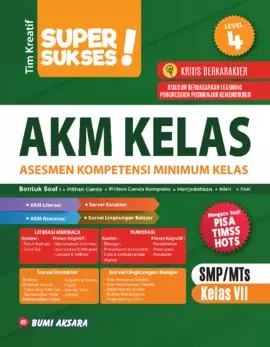 Buku soal Super Sukses AKM Kelas ini disiapkan untuk melatih dan meningkatkan kemampuan literasi siswa terutama Literasi Membaca dan Numerasi yang diharapkan meningkat pada setiap levelnya Adapun adanya contoh soal Survei Karakter untuk melatih siswa bagaimana dapat mendekati atau mencapai profil Pelajar Pancasila Survei Lingkungan Karakter untuk melihat kenyamanan dan kebutuhan siswa terhadap lingkungan sekolahnya Mengapa buku ini harus dimiliki siswa Disusun berdasarkan Learning Progression Pusmenjar Kemendikbud Semua komponen AKM diintegrasikan ke dalam setiap teks stimulus soal Mata pelajaran terintegrasi ke dalam teks stimulus soal Setiap teks memuat soal dengan proses kognitif secara berurutan Soal soal mengacu pada soal PISA TIMSS dan soal HOTS Bentuk soal bervariasi mulai dari pilihan ganda pilihan ganda kompleks menjodohkan isian dan esai Memuat contoh Survei Karakter yang sesuai dengan karakter Pelajar Pancasila dan Survei Lingkungan Belajar Buku ini melatih siswa untuk memahami literasi membaca dan numerasi dengan teks teks atau stimulus yang aplikatif Dengan belajar menggunakan buku Super Sukses AKM Kelas ini akan meningkatkan pemahaman siswa terhadap literasi membaca dan numerasi sejalan juga dengan meningkatnya kemampuan analisis siswa