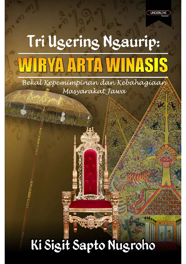 Wiryn Arta Winasis adalah sebuah kata yang penuh makna filosofis bagi Masyarakat Jawa karena kata kata tersebut dijadikan semacam pedoman tri ugering ngaurip Pedoman tersebut merupakan motivasi penggerak dalam bekerja mencari nafkah untuk hidup dan kehidupan di mana sejumlah faktor yang sangat berperan dalam kehidupan masyarakat Jawa Di antaranya terdiri dari wiry sebagai bentuk penjagaan kehormatan dan martabat manusia dalam suatu masyarakat Arta yang berdimensi pada terciptanya kemandirian finansial dan Winasis yang mengedepankan kecerdasan multidimensi terutama kecerdasan intelektual IQ emosional EQ dan Spiritual SQ untuk mewujudkan manusia seutuhnya menuju kebahagiaan masyarakat Jawa Sepuh Wutuh dan Tangguh yang berpegang teguh pada Memayu Hayuning Bawana Buku ini merupakan manisfestasi kegundahan hati penulis untuk merupakan pengendapan perjalanan panjang yang mencoba menggunakan osik bathin yang sempat melahirkan kenikmatan natural yang sulit dibayangkan penulis ketika memasuki dunia etik spiritual Jawa yang penuh falsafah yang adiluhung Salam literasi untuk negeri