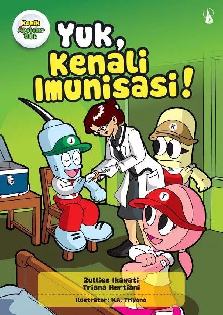 Komik Apoteker Cilik berjudul Yuk Kenali Imunisasi ini merupakan salah satu media edukatif bagi masyarakat khususnya anak anak SD SMP untuk memahami dan menyadari informasi imunisasi yang tepat Selain meningkatkan pengetahuan dan keterampilan anak dalam bidang kesehatan khususnya pengetahuan tentang imunisasi komik ini dapat mendukung kaderisasi apoteker cilik yang terintegrasi dengan program Usaha Kesehatan Sekolah Dengan kemasan ilustrasi komik berwarna yang menarik pembaca dikenalkan pula dengan beberapa istilah imunisasi dan sejarah dan proses pembuatan imunisasi yang belum banyak diketahui oleh masyarakat umum