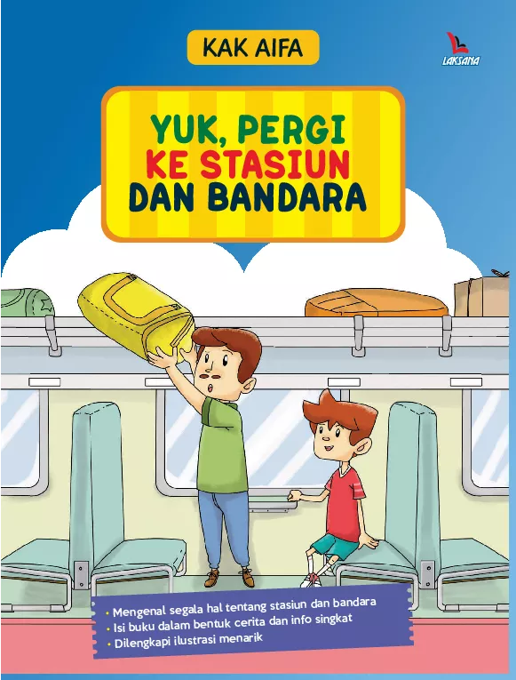 Kami berjalan menuju antrean Kami berjalan menuju antrean Diperiksa lagi Bu tanyaku saat melihat petugas memeriksa tiket penumpang Iya ini pemeriksaan terakhir Pemeriksaan boarding pass sahut Ibu Itu percakapan Dina dan Ibu di stasiun Dina heran Banyak sekali pemeriksaan saat di bandara Semua barang bawaan pun diperiksa Kenapa ya Temukan jawabannya di buku ini Nah ada lagi pengalaman Doni yang pertama kali berada di stasiun Banyak sekali info penting dan menarik tentang stasiun dan bandara Buku ini juga dilengkapi daftar istilah di stasiun dan bandara Sebagai pelengkap ada informasi stasiun dan bandara besar di Indonesia