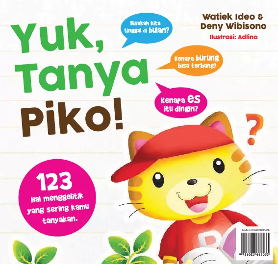 Sinopsis Buku: Buku ini adalah kumpulan pertanyaan seru dan menarik yang sering muncul di benak anak-anak. Dengan gaya penjelasan yang santai dan mudah dipahami, Piko, tokoh utama dalam buku ini, membantu menjelaskan berbagai fenomena alam, kehidupan sehari-hari, dan hal-hal yang mungkin membuat kita bingung. Mulai dari pertanyaan sederhana seperti “Kenapa es dingin?” hingga pertanyaan yang lebih mendalam seperti “Kenapa Tuhan memanggil papaku terlalu cepat?” buku ini memberikan jawaban yang informatif dan menyenangkan. Dengan 123 pertanyaan yang terorganisir dalam berbagai tema, buku ini menjadi teman belajar yang menarik untuk anak-anak yang ingin tahu dan berpikir kritis. Buku ini cocok untuk dikoleksi oleh anak-anak, orang tua, dan pendidik yang ingin membangun minat sains dan rasa ingin tahu pada anak-anak.